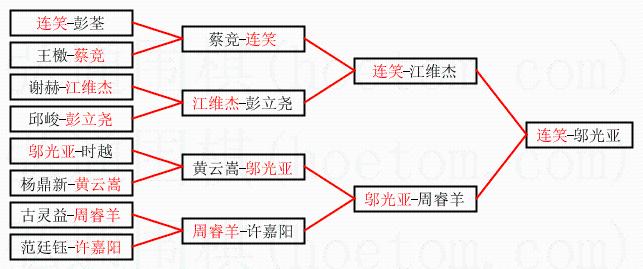 1.连笑获得冠军,邬光亚获得亚军。决赛比分:连笑1:0邬光亚。棋局: