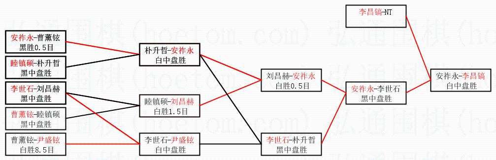 3.下半区半决赛安祚永获胜,比分:安祚永1:0李世石。棋局: