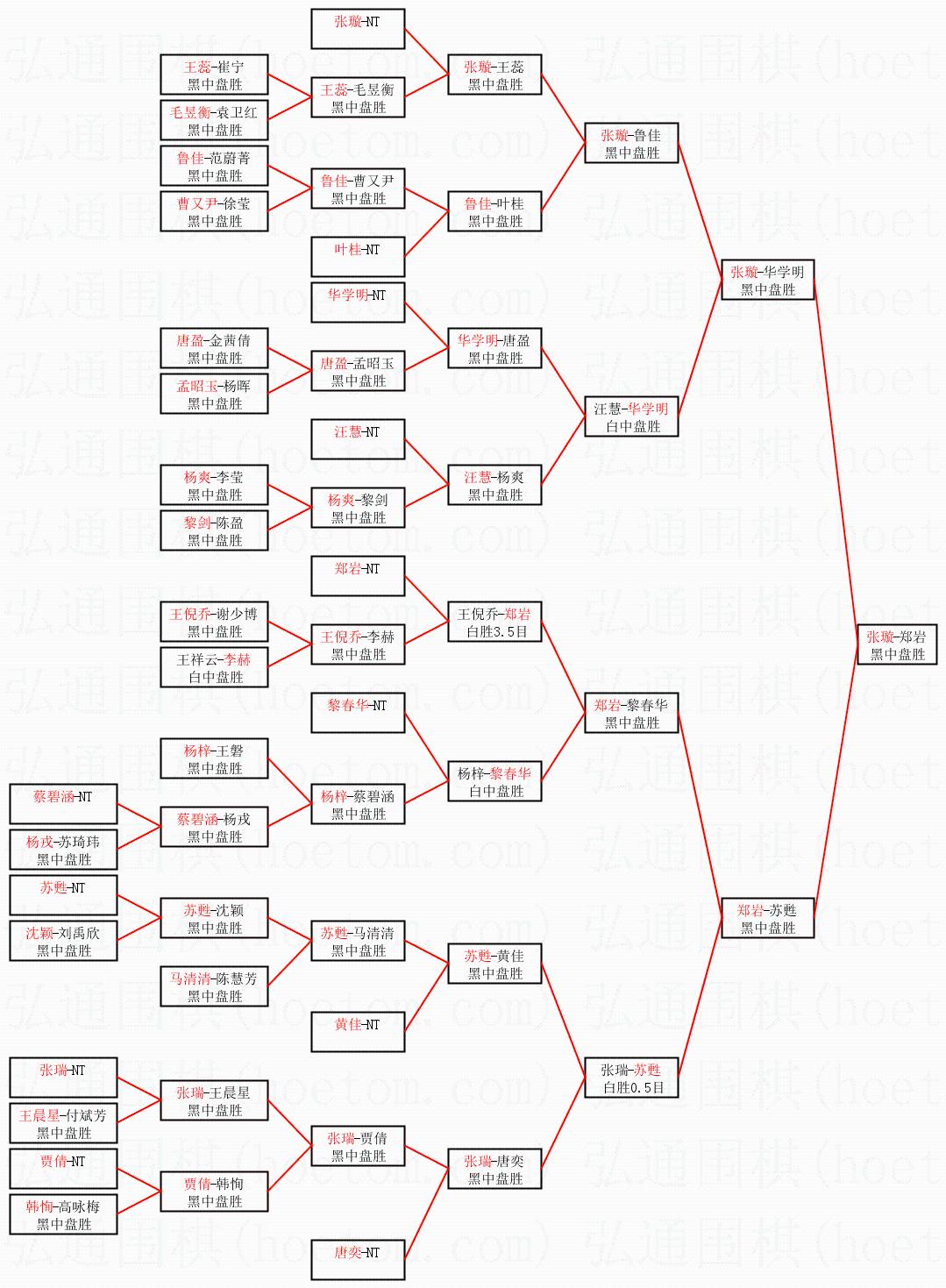 2.上半区半决赛张璇获胜, 比分:张璇 1:0 华学明。棋局: