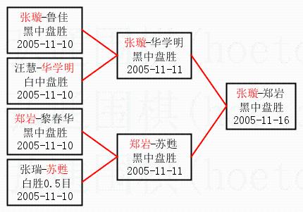 2.上半区半决赛张璇获胜, 比分:张璇 1:0 华学明。棋局: