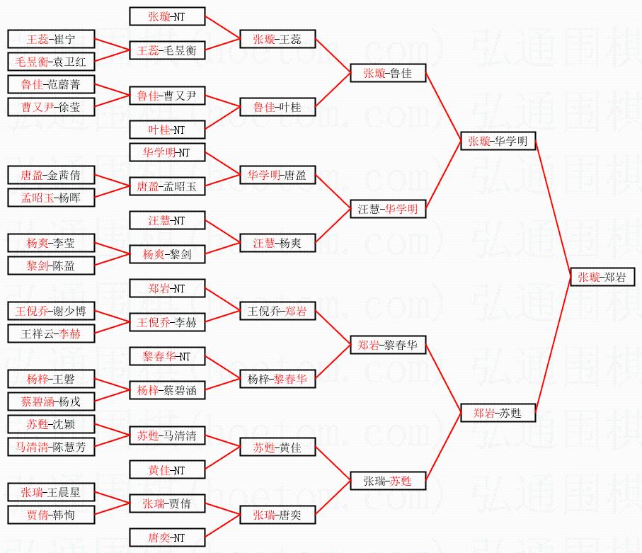 2.上半区半决赛张璇获胜, 比分:张璇 1:0 华学明。棋局: