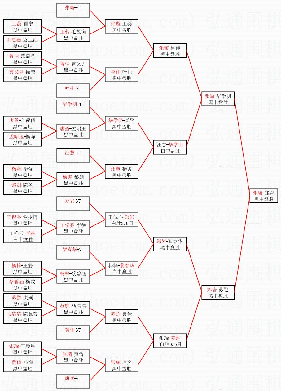 2.上半区半决赛张璇获胜, 比分:张璇 1:0 华学明。棋局: