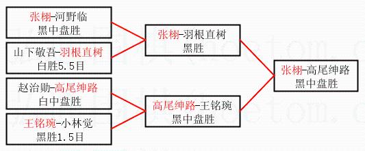 3.下半区半决赛高尾绅路获胜,比分:高尾绅路1:0王铭琬。棋局: