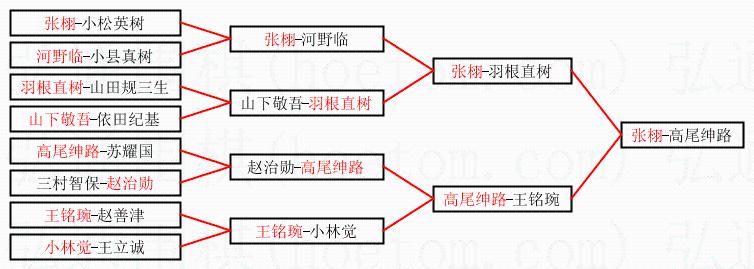 1.张栩获得冠军,高尾绅路获得亚军。决赛比分:张栩1:0高尾绅路。棋局: