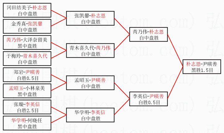 | 1.朴志恩获得冠军,尹暎善获得亚军。决赛比分:朴志恩2:0尹暎善。棋局: | ||