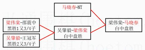 | 3.下半区半决赛梁伟棠获胜,比分:梁伟棠2:0吴肇毅。棋局: | ||