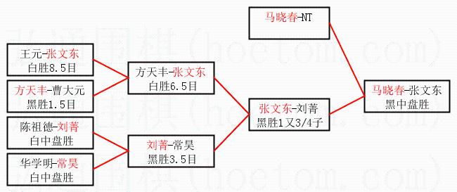 1.马晓春获得冠军,张文东获得亚军。决赛比分:马晓春3:2张文东。棋局: