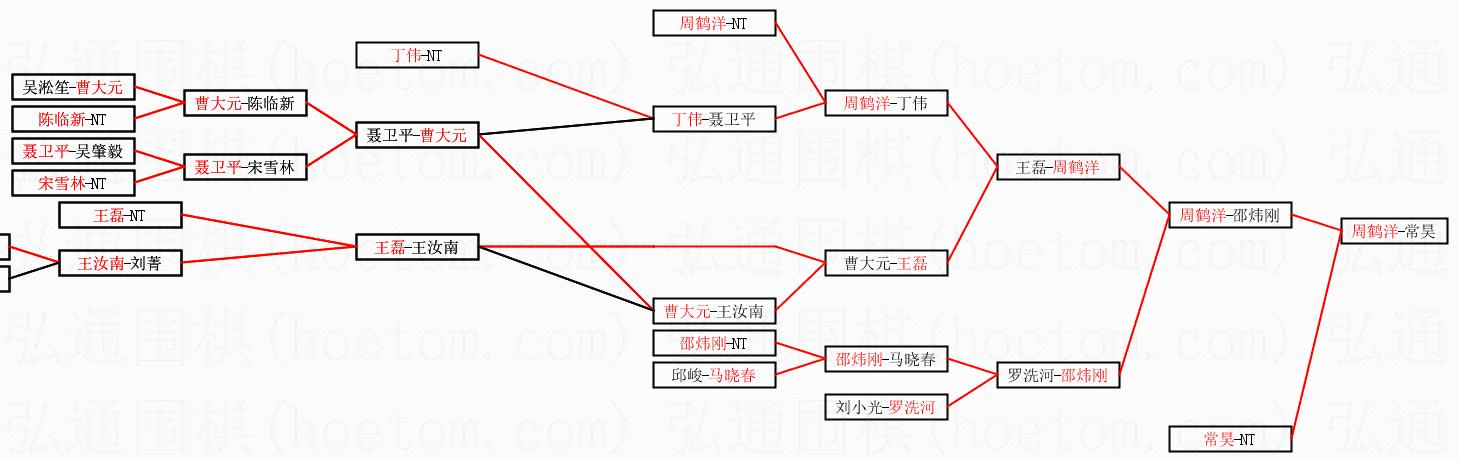 | 1.周鹤洋获得冠军,常昊获得亚军。决赛比分:周鹤洋4:0常昊。棋局: | ||