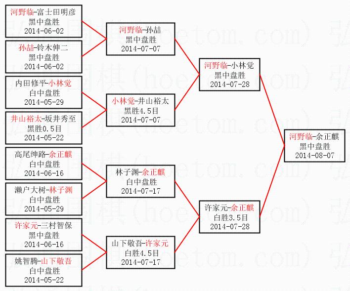 2.上半区半决赛河野临获胜, 比分:河野临 1:0 小林觉。棋局: