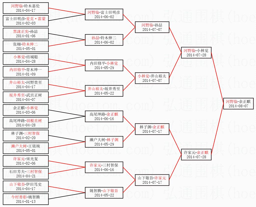 2.上半区半决赛河野临获胜, 比分:河野临 1:0 小林觉。棋局: