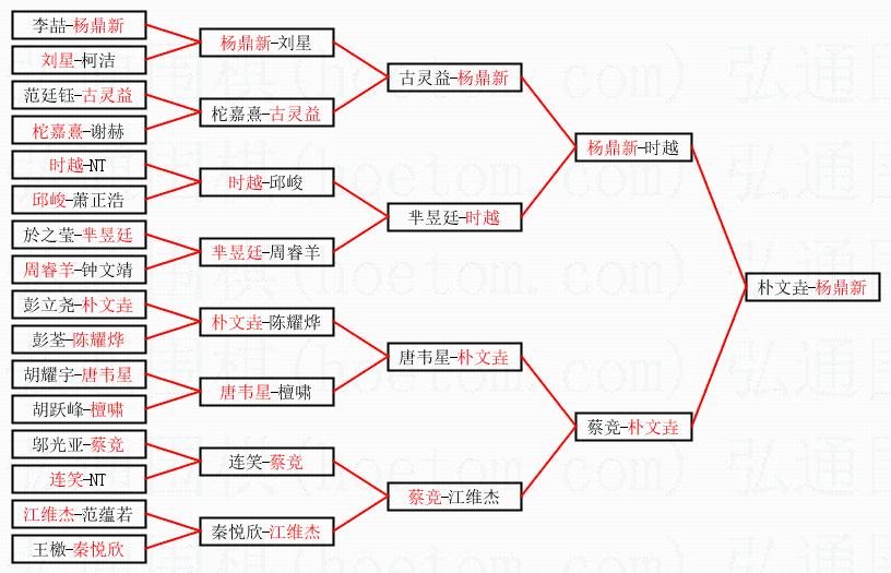 | 1.杨鼎新获得冠军,朴文垚获得亚军。决赛比分:杨鼎新2:0朴文垚。棋局: | ||