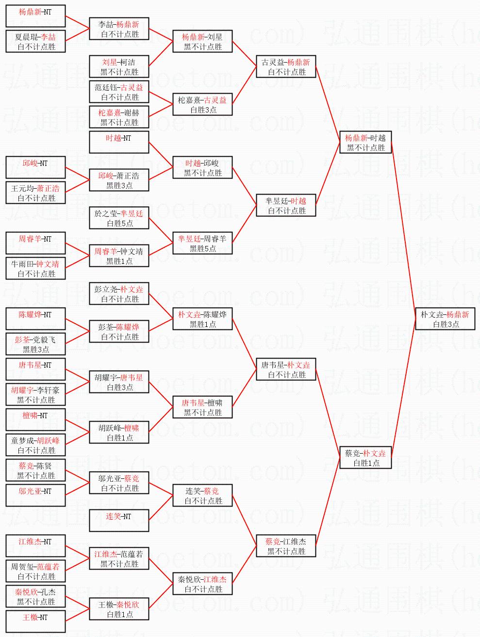 | 1.杨鼎新获得冠军,朴文垚获得亚军。决赛比分:杨鼎新2:0朴文垚。棋局: | ||