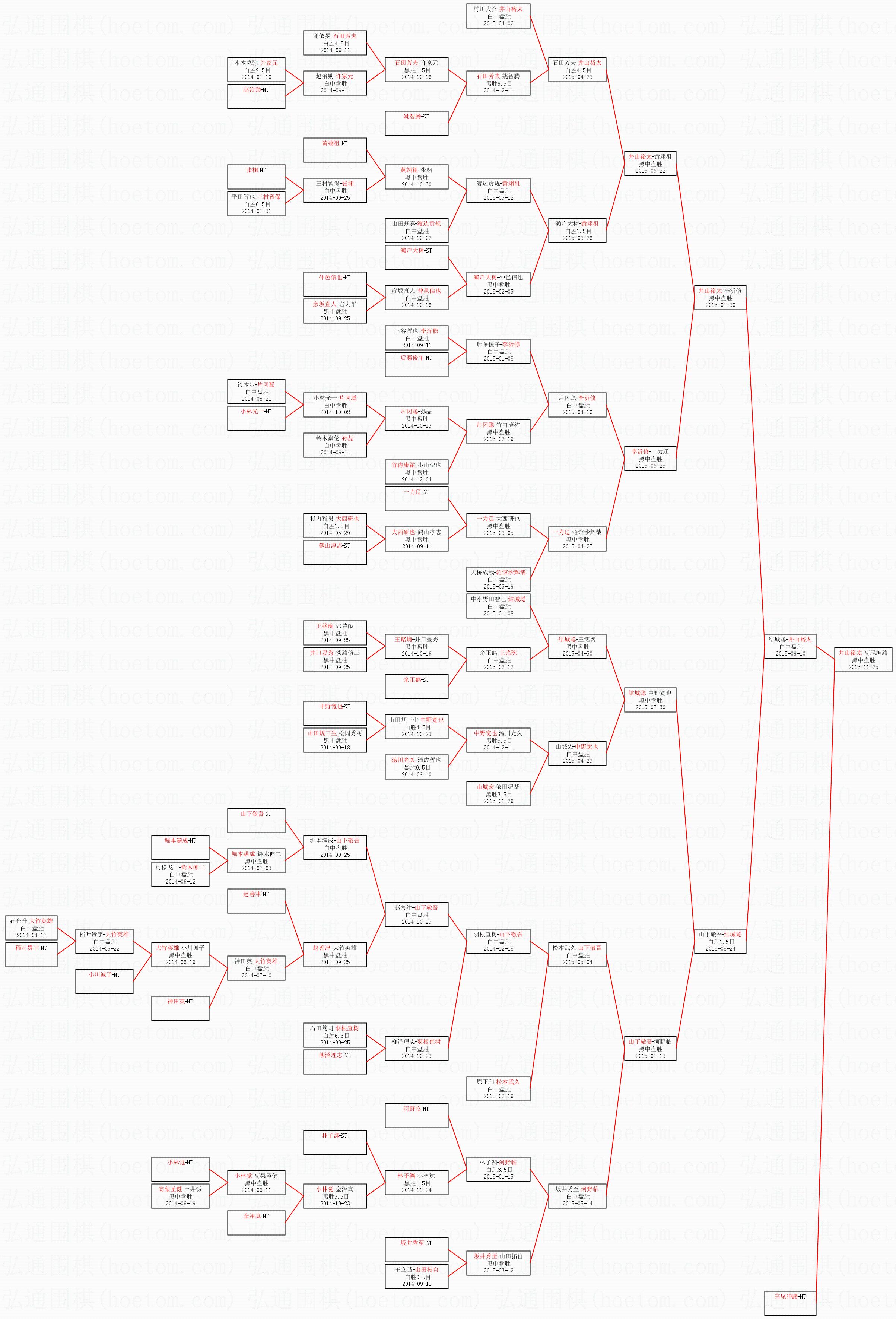 1.井山裕太获得冠军,高尾绅路获得亚军。决赛比分:井山裕太3:0高尾绅路。棋局: