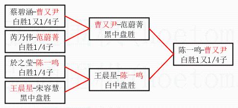 2.上半区半决赛曹又尹获胜, 比分:曹又尹 1:0 范蔚菁。棋局: