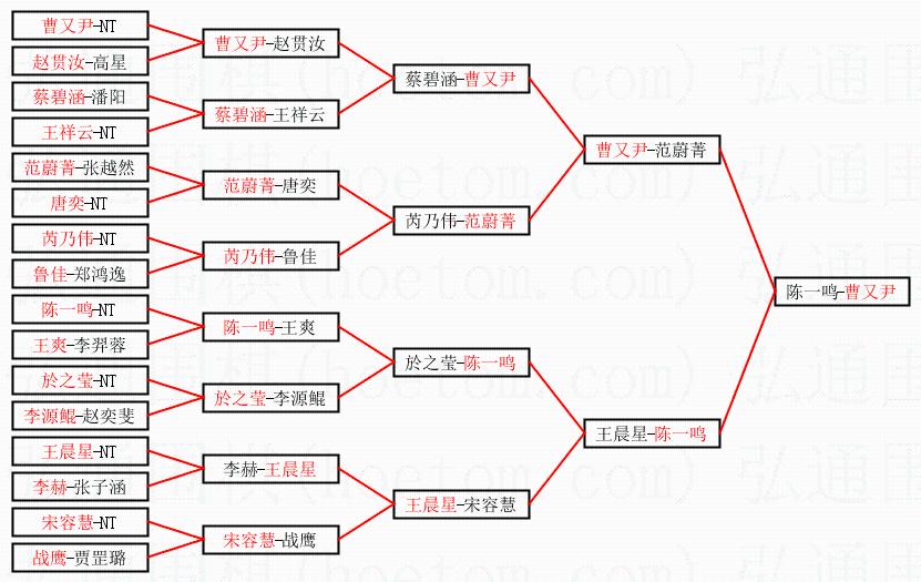 | 1.曹又尹获得冠军,陈一鸣获得亚军。决赛比分:曹又尹2:1陈一鸣。棋局: | ||