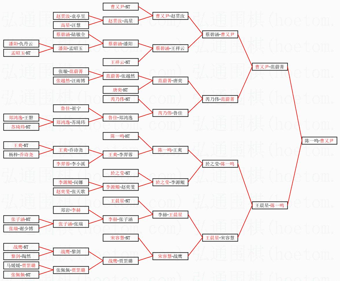 1.曹又尹获得冠军,陈一鸣获得亚军。决赛比分:曹又尹2:1陈一鸣。棋局: