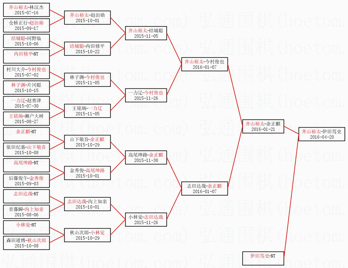 | 1.井山裕太获得冠军,伊田笃史获得亚军。决赛比分:井山裕太3:1伊田笃史。棋局: | ||