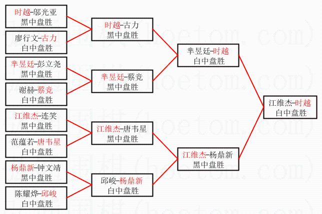 1.时越获得冠军,江维杰获得亚军。决赛比分:时越1:0江维杰。棋局: