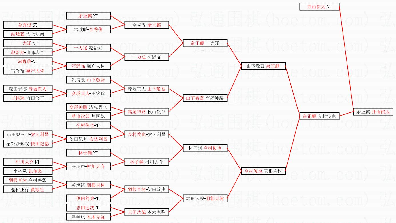 1.井山裕太获得冠军,余正麒获得亚军。决赛比分:井山裕太3:1余正麒。棋局: