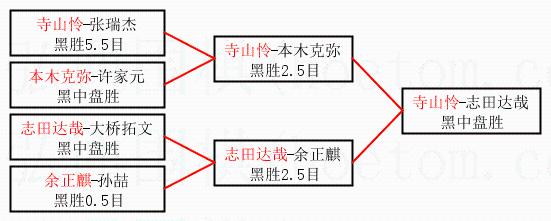 3.下半区半决赛志田达哉获胜,比分:志田达哉1:0余正麒。棋局: