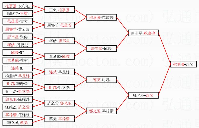 | 1.柁嘉熹获得冠军,连笑获得亚军。决赛比分:柁嘉熹2:0连笑。棋局: | ||