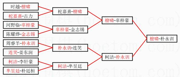 1.檀啸获得冠军,朴永训获得亚军。决赛比分:檀啸2:1朴永训。棋局: