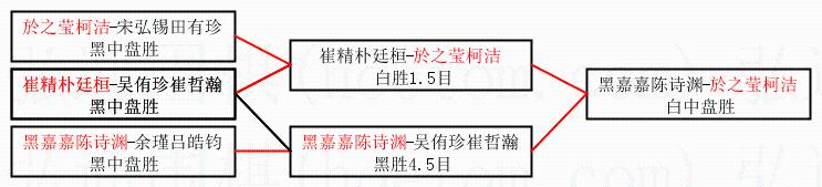 2.上半区半决赛於之莹柯洁获胜, 比分:於之莹柯洁 1:0 崔精朴廷桓。棋局: