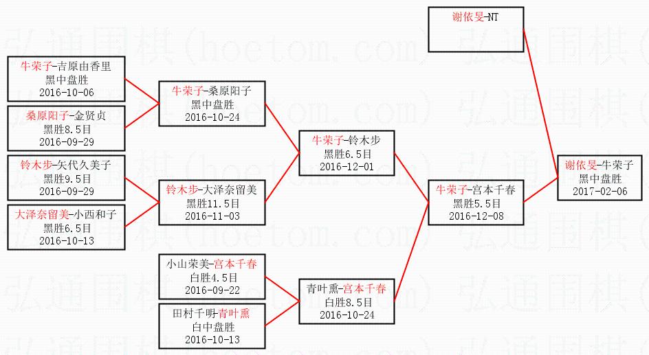 3.下半区半决赛牛荣子获胜,比分:牛荣子1:0宫本千春。棋局: