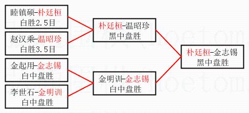 2.上半区半决赛朴廷桓获胜, 比分:朴廷桓 1:0 温昭珍。棋局: