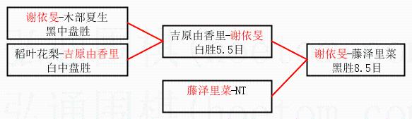 | 2.上半区半决赛谢依旻获胜, 比分:谢依旻 1:0 吉原由香里。棋局: | ||
