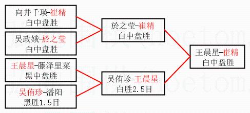 2.上半区半决赛崔精获胜, 比分:崔精 1:0 於之莹。棋局: