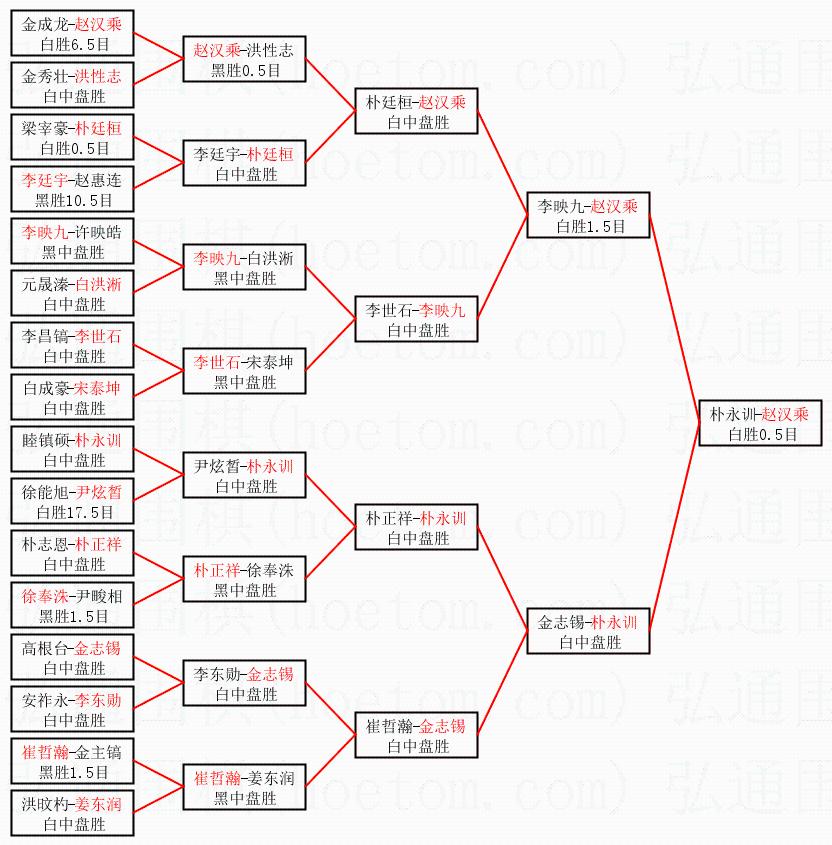 | 1.赵汉乘获得冠军,朴永训获得亚军。决赛比分:赵汉乘2:1朴永训。棋局: | ||