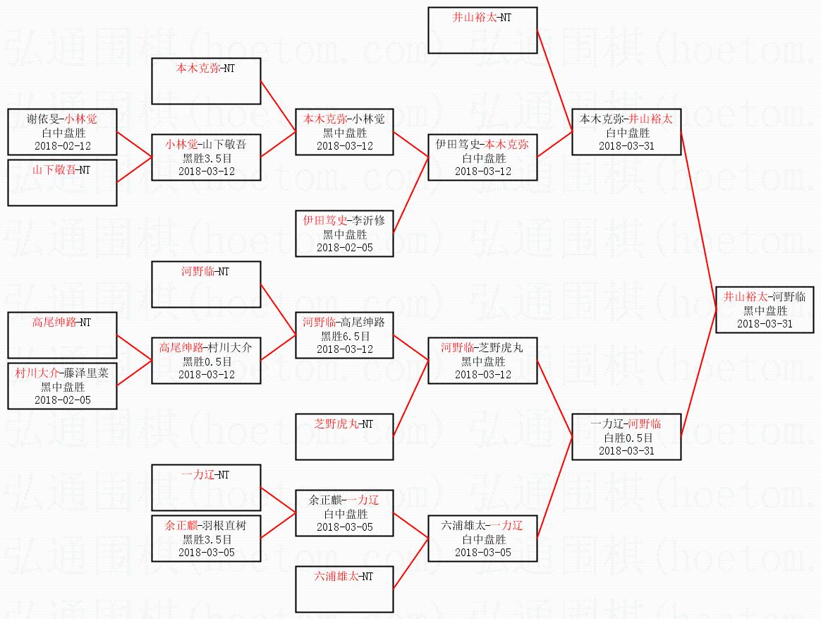 2.上半区半决赛井山裕太获胜, 比分:井山裕太 1:0 本木克弥。棋局: