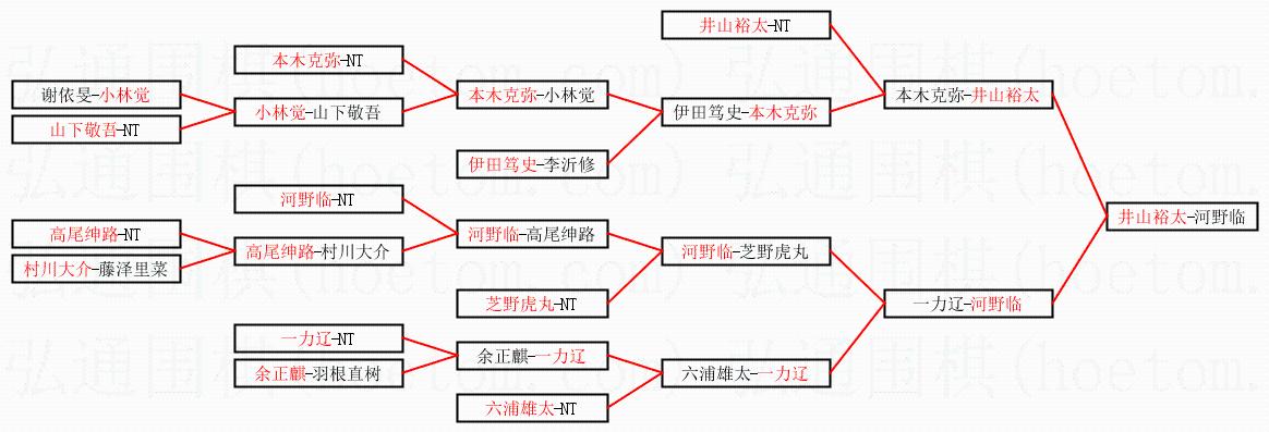 1.井山裕太获得冠军,河野临获得亚军。决赛比分:井山裕太1:0河野临。棋局: