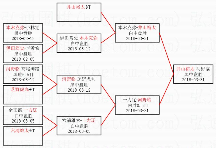 2.上半区半决赛井山裕太获胜, 比分:井山裕太 1:0 本木克弥。棋局: