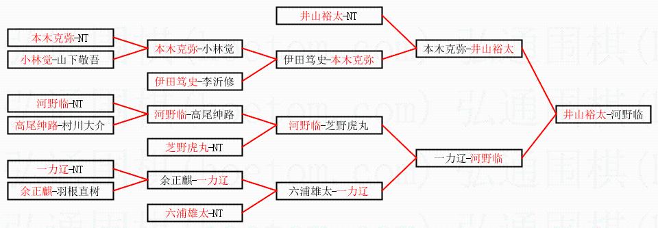 2.上半区半决赛井山裕太获胜, 比分:井山裕太 1:0 本木克弥。棋局: