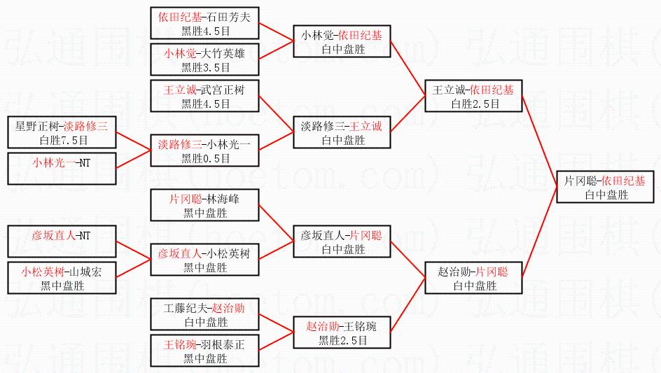 1.依田纪基获得冠军,片冈聪获得亚军。决赛比分:依田纪基1:0片冈聪。棋局: