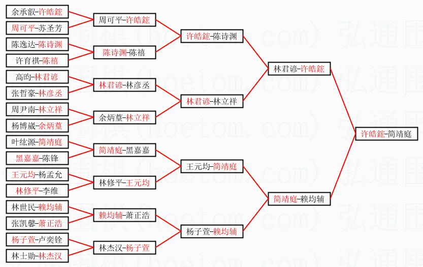 1.许皓鋐获得冠军,简靖庭获得亚军。决赛比分:许皓鋐2:0简靖庭。棋局: