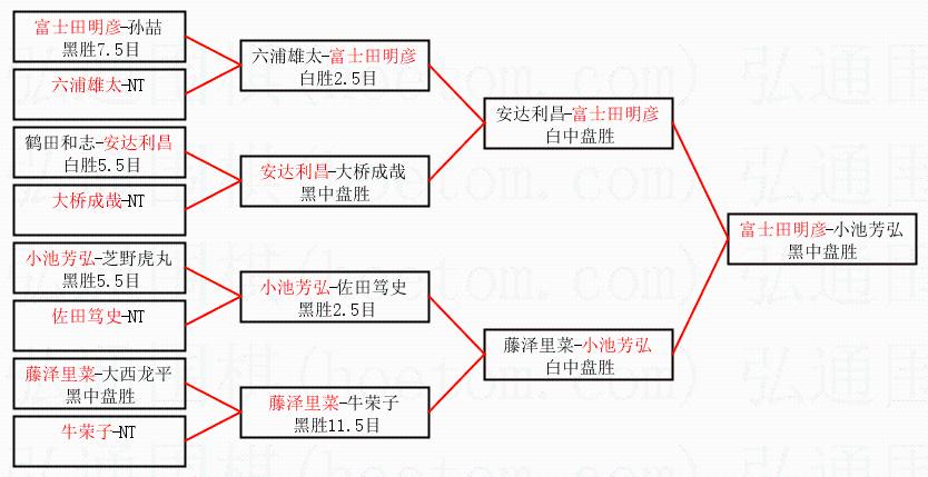 | 1.富士田明彦获得冠军,小池芳弘获得亚军。决赛比分:富士田明彦1:0小池芳弘。棋局: | ||