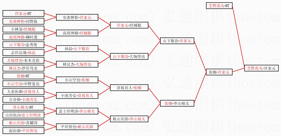 1.芝野虎丸获得冠军,许家元获得亚军。决赛比分:芝野虎丸3:1许家元。棋局: