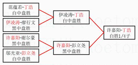 2.上半区半决赛丁浩获胜, 比分:丁浩 1:0 伊凌涛。棋局: