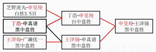 2.上半区半决赛申旻埈获胜, 比分:申旻埈 1:0 丁浩。棋局: