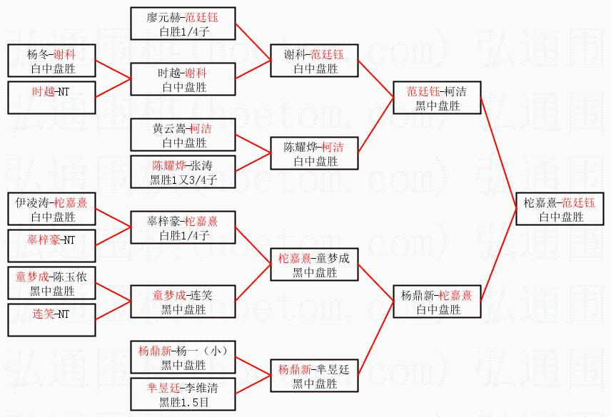 2.上半区半决赛范廷钰获胜, 比分:范廷钰 1:0 柯洁。棋局: