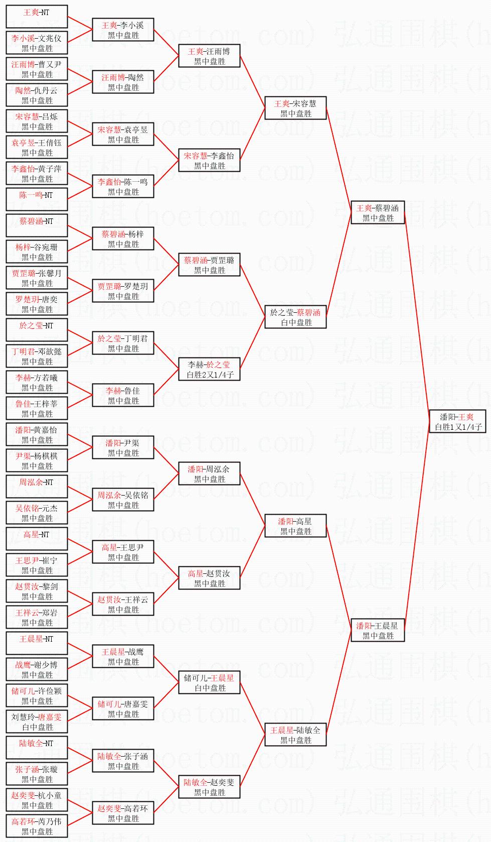 2.上半区半决赛王爽获胜, 比分:王爽 1:0 蔡碧涵。棋局: