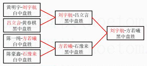 2.上半区半决赛刘宇航获胜, 比分:刘宇航 1:0 吕立言。棋局: