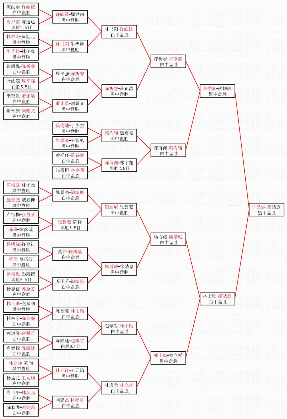1.许皓鋐获得冠军,简靖庭获得亚军。决赛比分:许皓鋐2:0简靖庭。棋局: