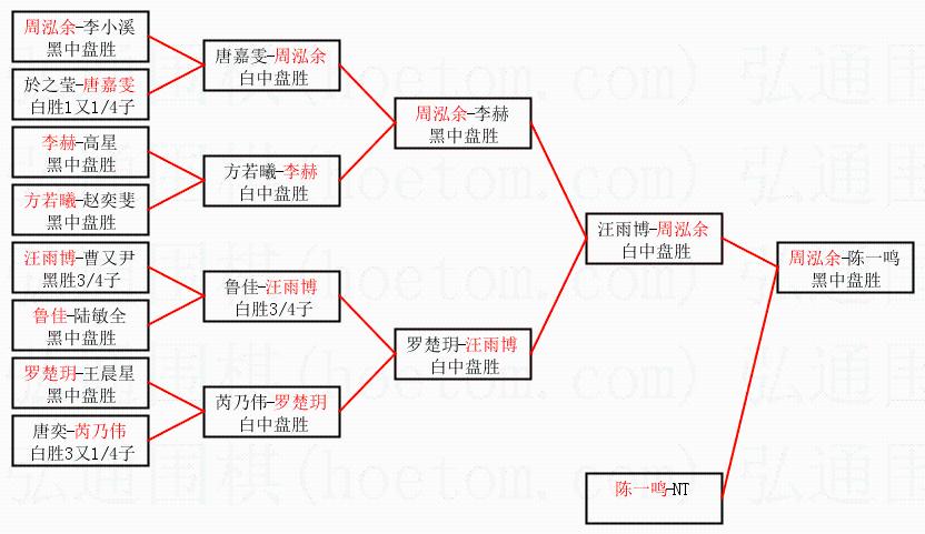 1.周泓余获得冠军,陈一鸣获得亚军。决赛比分:周泓余2:1陈一鸣。棋局: