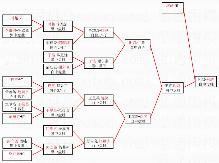 1.柯洁获得冠军,时越获得亚军。决赛比分:柯洁2:0时越。棋局: