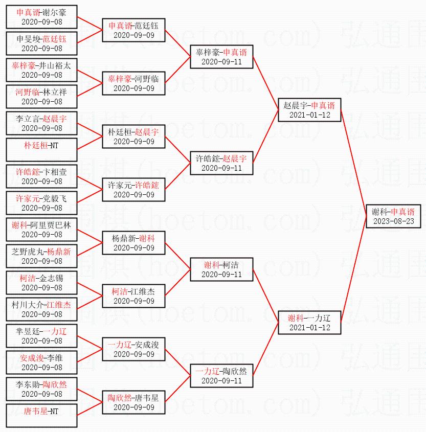 1.申真谞获得冠军,谢科获得亚军。决赛比分:申真谞2:0谢科。棋局: