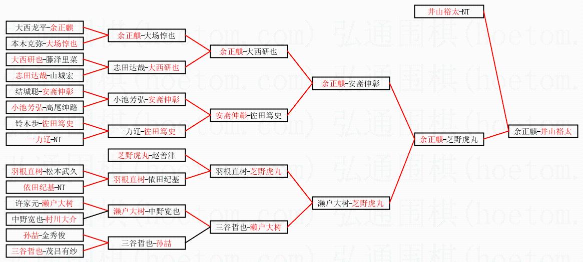 1.井山裕太获得冠军,余正麒获得亚军。决赛比分:井山裕太3:0余正麒。棋局: